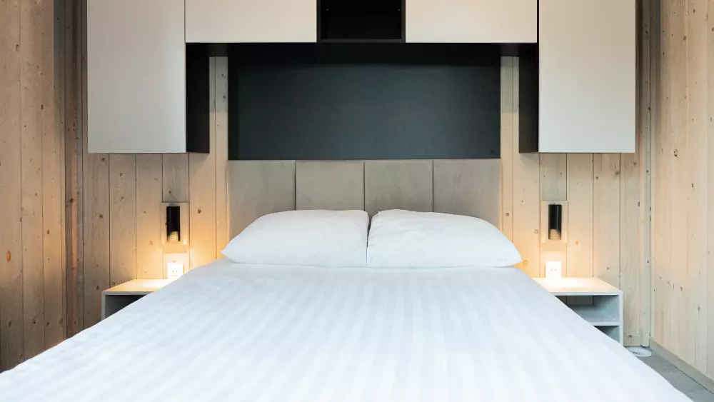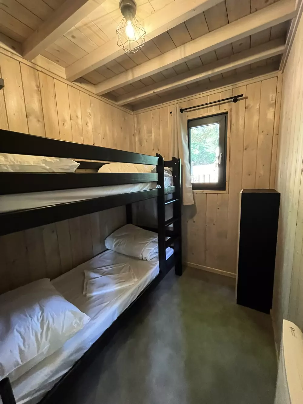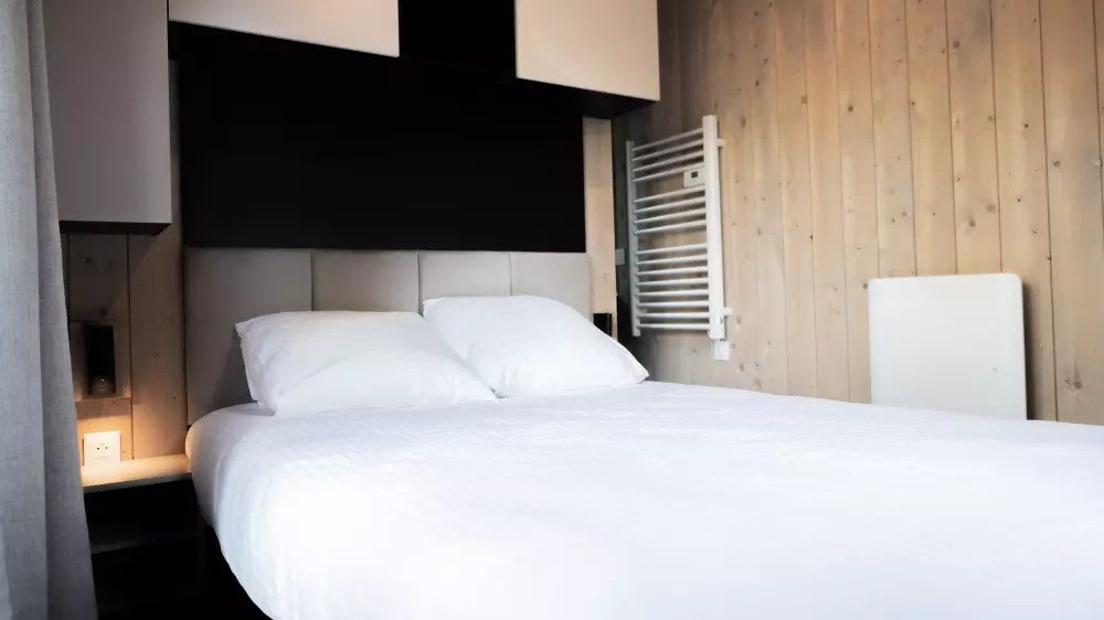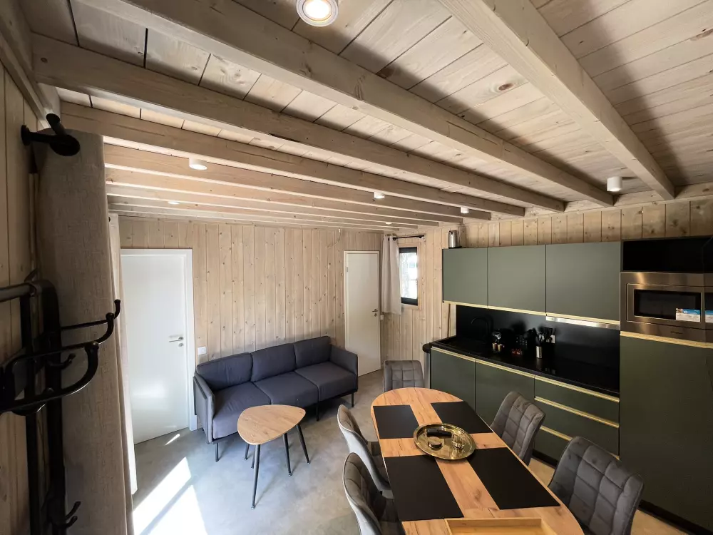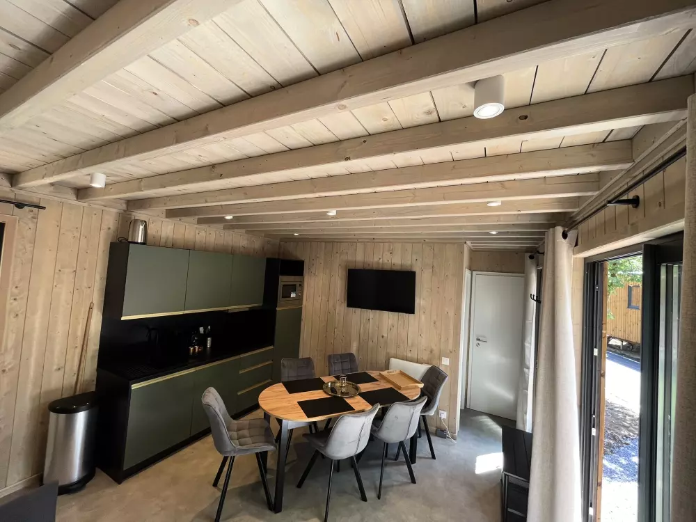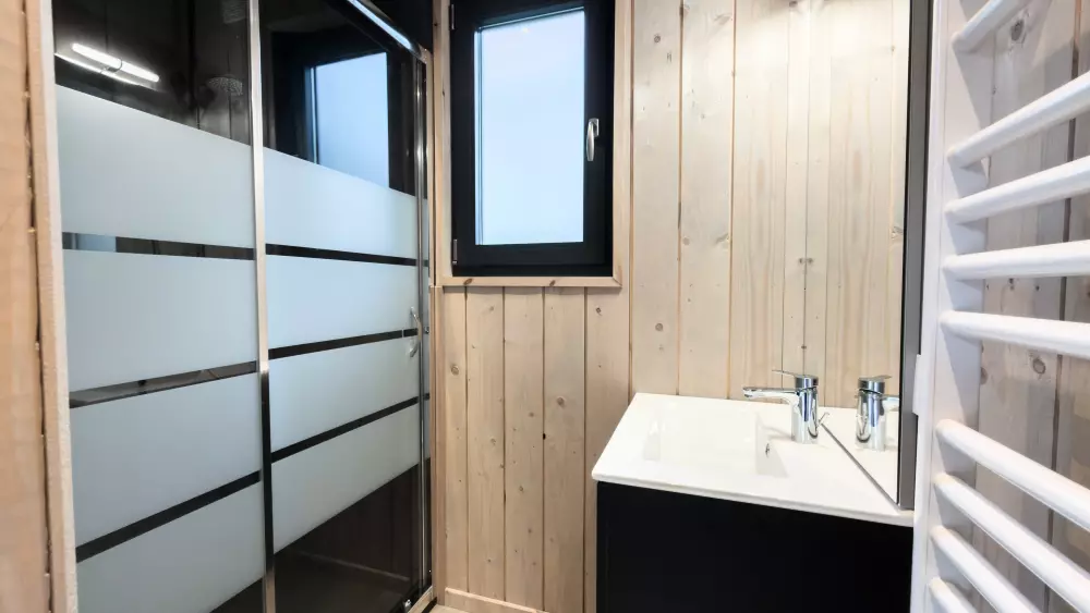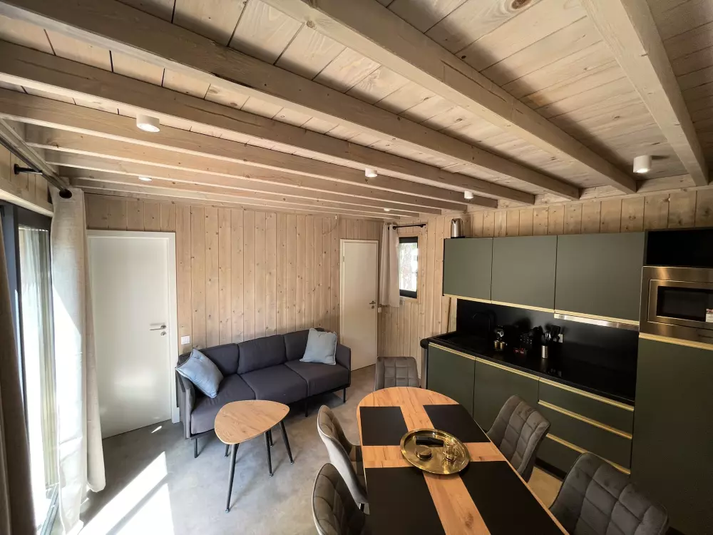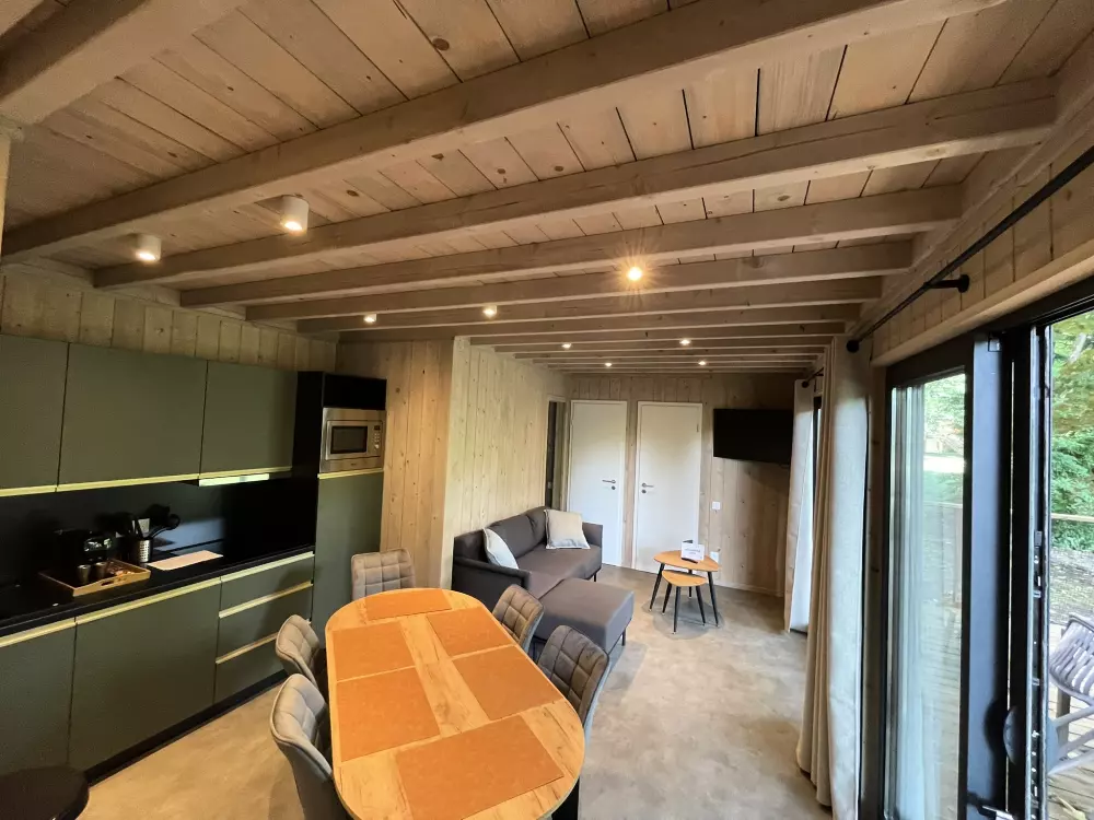 - Écolodges (4 à 6 personnes) : Lodges modernes et durables, parfaits pour les familles ou les amis. Ils sont équipés d'une cuisine complète, d'un séjour convivial, d'une salle de bains et d'une terrasse privée. Certains modèles de 3 chambres disposent de deux salles de bains.