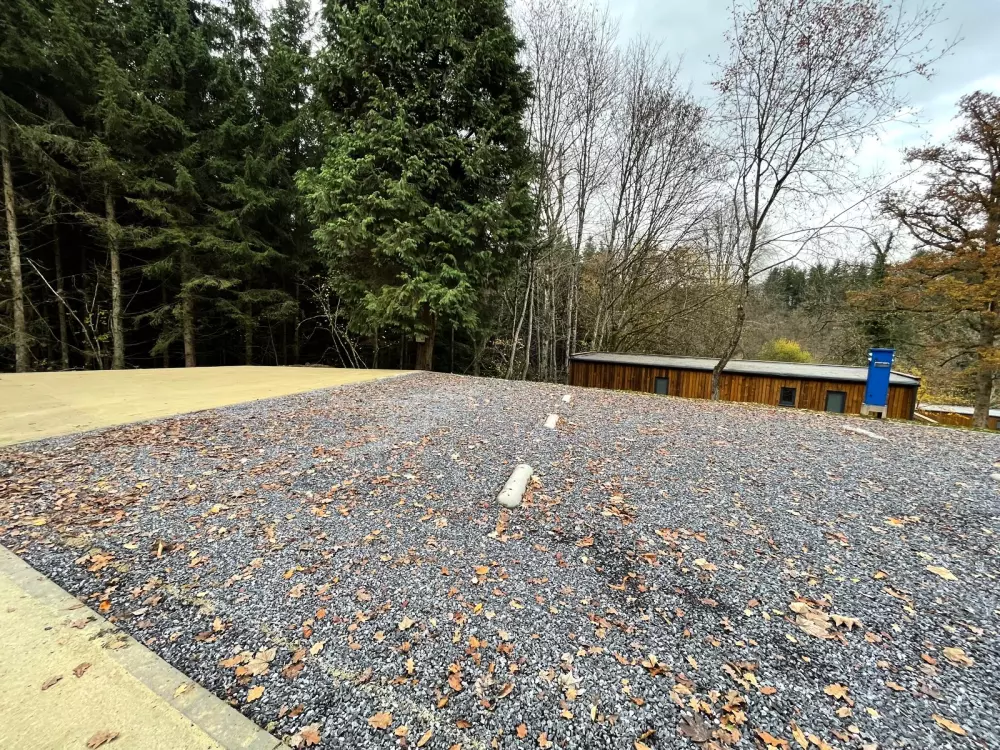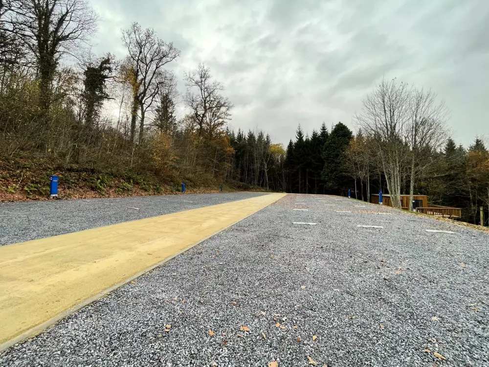 - Aire pour camping-cars : Zone entièrement automatisée avec de vastes emplacements (environ 60 m²) et des sanitaires communs. Réservée aux camping-cars.