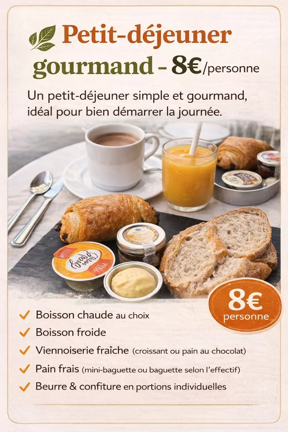 - Dépôt de pain : Dépôt de pain (Haute saison uniquement), dépôt de viennoiseries (Haute saison uniquement)