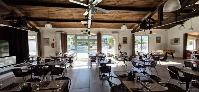 Côté services, le restaurant vous propose des menus variés et des soirées à thèmes. Vous pourrez également commander des plats à emporter (pizza, frites, sandwichs), y savourer un petit déjeuner avec pain frais et viennoiseries, vous rafraichir en journée ou, au moment de l'apéritif déguster cocktails et tapas sur la terrasse lounge.
