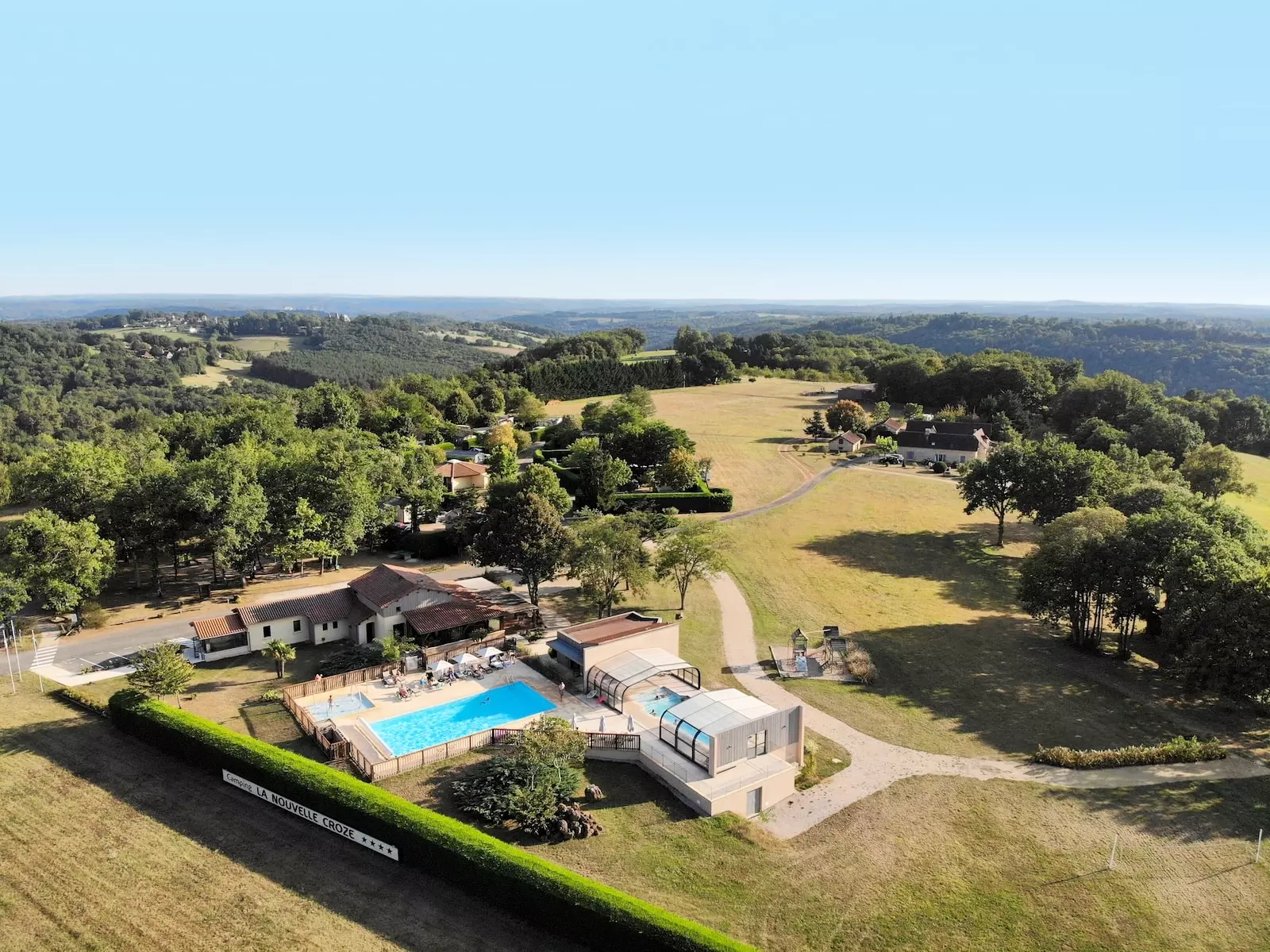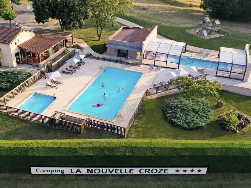 Perché au sommet d'une des collines les plus élevées du Périgord noir, La Nouvelle Croze est le plus petit camping 4 étoiles de Dordogne pour un tourisme à visage humain. Situé au cœur de la Vallée Vézère, a mi-chemin entre Sarlat et Périgueux, ce camping familial vous accueille au milieu d'une nature préservée. Ses 44 emplacements paysagés et ses grands espaces de verdures en font le paradis des enfants et vous promettent des vacances calmes et inoubliables en famille. Ses services de qualité vous séduiront : Piscines chauffées, piscine couverte et espace bien-être en toute saison ou encore restaurant et bar à cocktails (en Juillet-Août) seront au rendez-vous. À 10 km de Lascaux et des Eyzies, capitale de la préhistoire, et à côté de la grotte aux « cent mammouths » à Rouffignac (accessible par un sentier de randonnée) le camping se trouve au carrefour des plus beaux sites touristiques de Périgord Noir et de Dordogne.