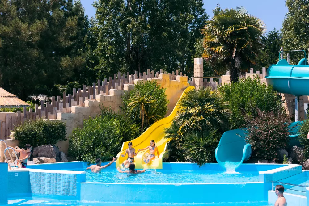 Venez vous détendre au parc aquatique avec la piscine couverte et le jacuzzi, ainsi que la piscine extérieure chauffée disposant d'une pataugeoire et de deux toboggans aquatiques pour dynamiser vos vacances !