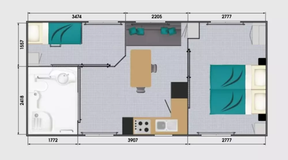- 5 mobil-home 2 chambres pour 4 personnes dont 1 adapté pour les personnes à mobilité réduite