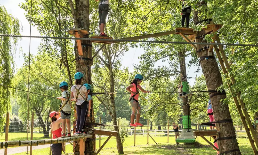 Téméraires ? Trois véritables parcours d'accrobranche présents sur le camping avec la super tyrolienne de 200 m au-dessus du parc aquatique ! (À partir de 5 ans, ouvert tous les jours de juillet/aout (hors samedi) et les mercredis, week-end et jours fériés en basse saison, avec supplément).