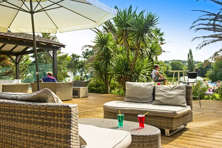 Du 01/07 au 31/08, le Bar piscine vient compléter l'offre de services. Dans la douceur du matin, optez pour un petit expresso en terrasse, et à tout moment de la journée, pour un rafraîchissement au bar, face à la piscine pourvue d'une salle TV avec grand écran.