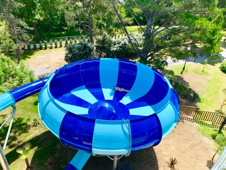 À votre disposition, une grande piscine avec pataugeoire ludique de 600 m² avec jets, arbre à seau et canons à eau. 4 toboggans aquatiques qui en raviront plus d'un : Kamikaze, Géant, Hydro-tube et l'incroyable Space Bowl… Ça va décoiffer !