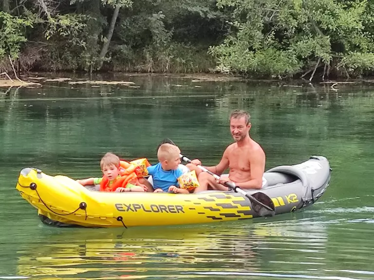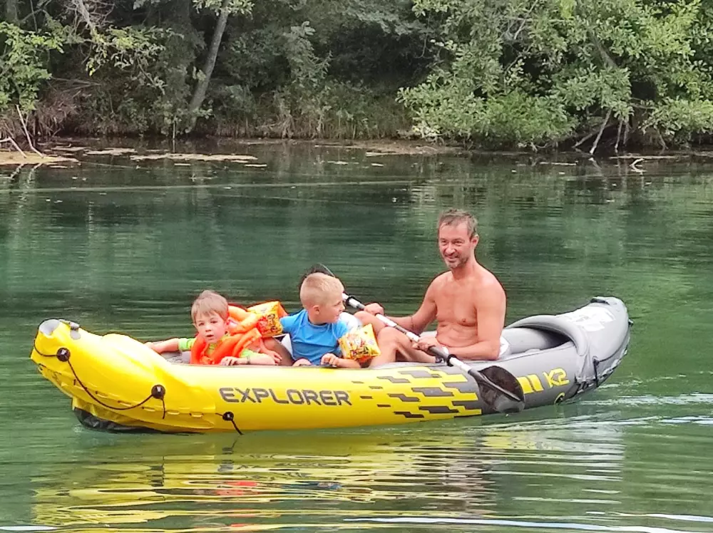 Baignade et détente au bord de la rivière, accessible directement depuis le camping.