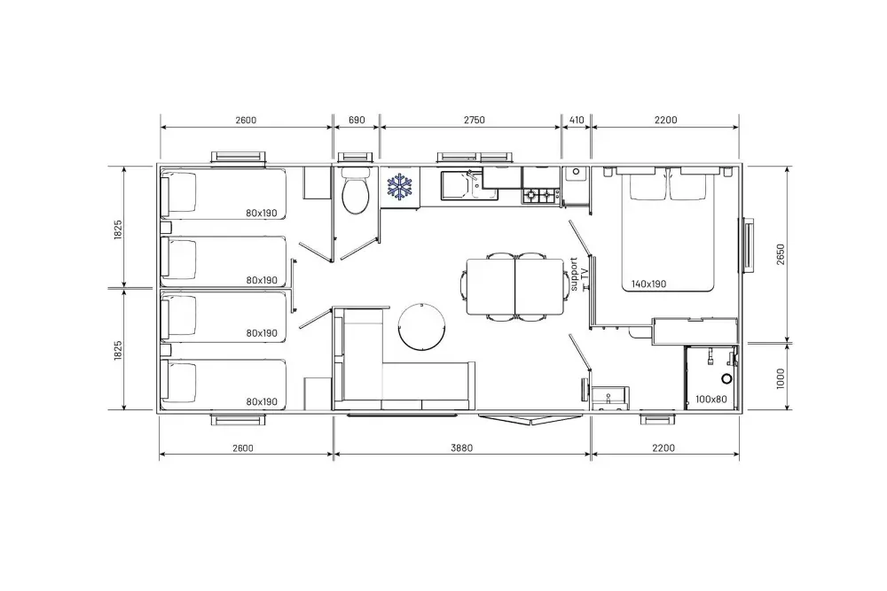 - Ménage de fin de séjour (souscrit dès la réservation) (en supplément)