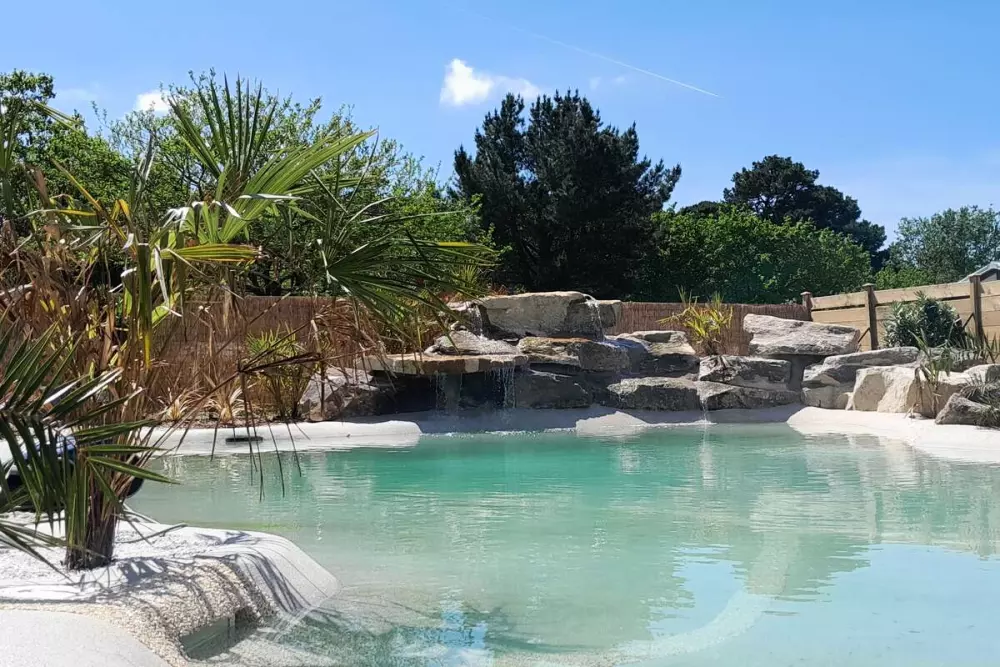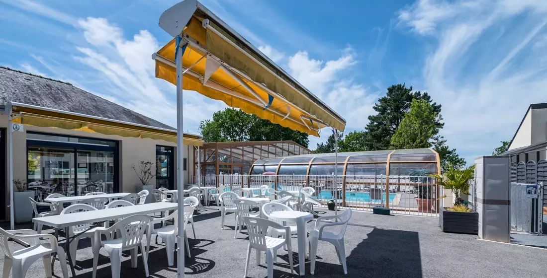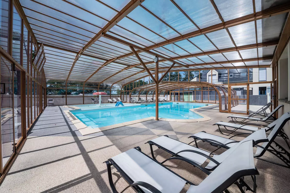 Notre Camping Paradis d'Arvor possède une piscine couverte et chauffée ainsi qu'un bassin extérieur avec toboggan.