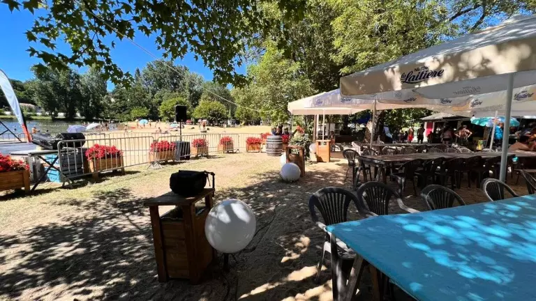 La base de loisirs a été créé pour satisfaire petits et grands, ainsi vous y trouverez transats, parasols et salons de jardin pour le farniente, des tables de pique-nique au bord de la rivière pour un repas en famille ou entre amis, des équipements de loisirs pour les plus sportifs, tables de ping pong, terrain de beach volley et boulodrome.