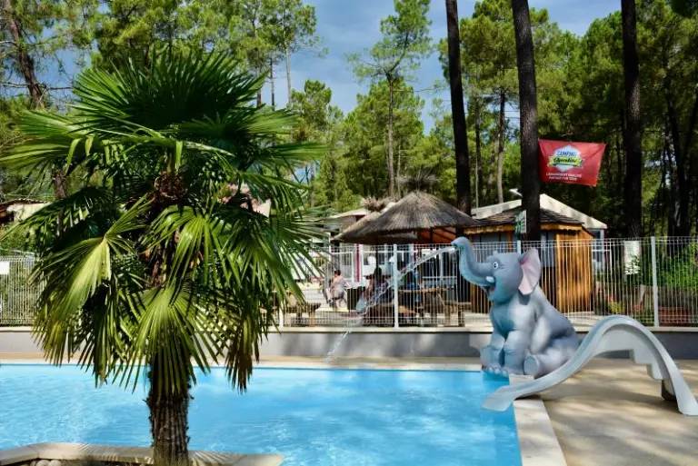 Pour le plaisir de tous, un espace aquatique se trouve à l'intérieur du camping : 2 piscines (chauffées à partir de début mai) sont à votre disposition ainsi que des transats pour vous reposer. Des jeux d'eau tels que l'éléphant et le toboggan seront appréciés des enfants.