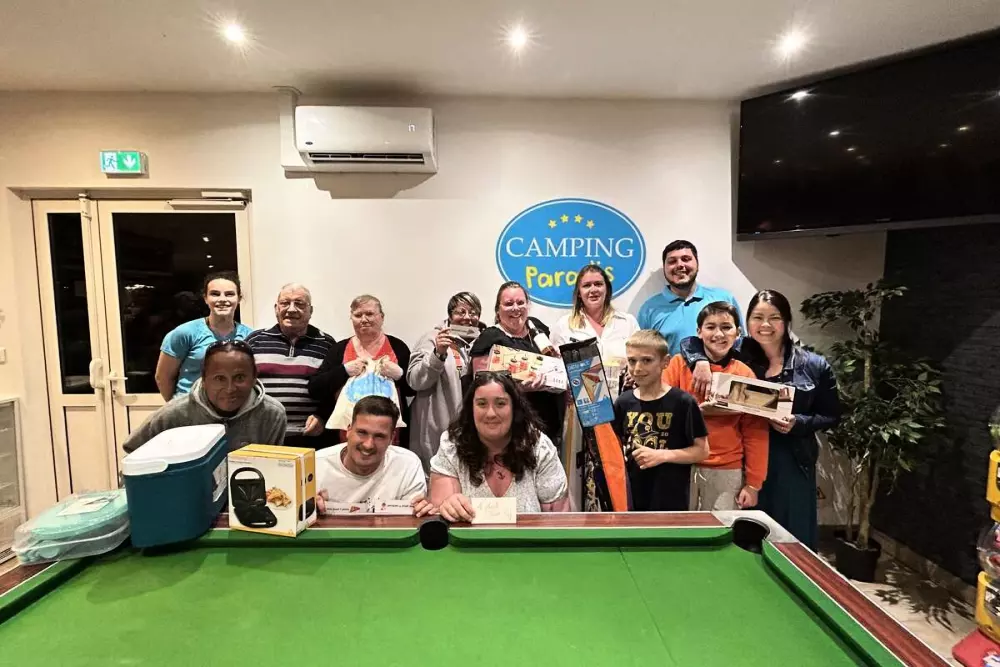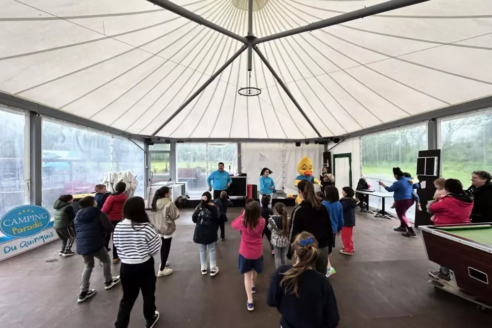 - Des animations pour les enfants et les adultes (tournois de ping-pong, de pétanque, jeux aquatiques et autres défis sportifs…). Et des activités en soirée comme des jeux apéros et soirées et repas à thèmes aux couleurs et marqueurs Camping Paradis : : polos bleus, voiturettes, Piki Club, Paradis des Stars, Fiesta boom boom, etc.
