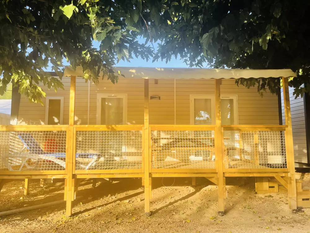Petit plus, certains sont installés face à face pour vous réunir avec tous vos amis ou votre famille sur la terrasse commune aux deux mobil homes avec barbecue, ainsi qu'un mobil luxe sur son terrain clos avec jacuzzi, barbecue, salon de jardin, kit enfants... "un vrai Paradis" !