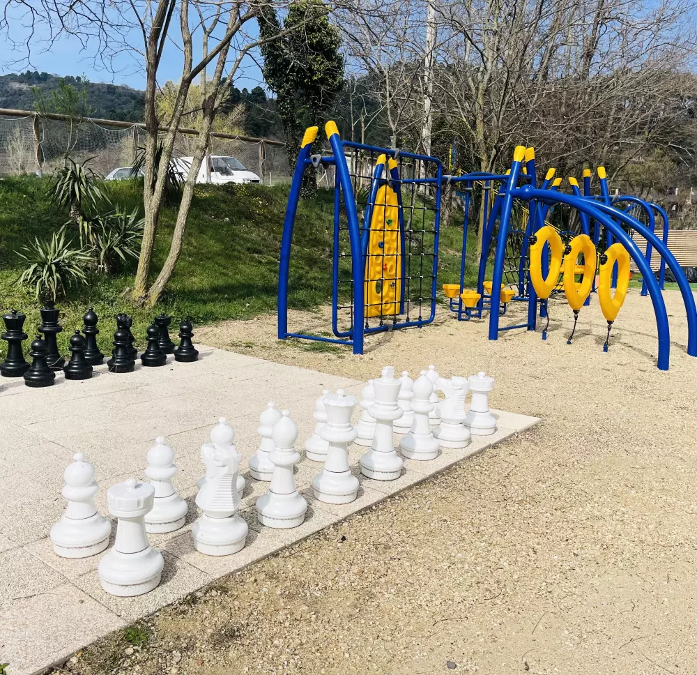 S'il leur reste de l'énergie, le parcours aventure saura les mettre au défi. Les plus grands trouveront leur bonheur en se confrontant au jeu d'échec ou de dames géants.
