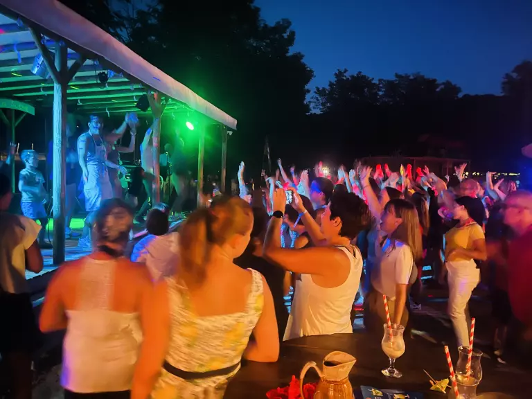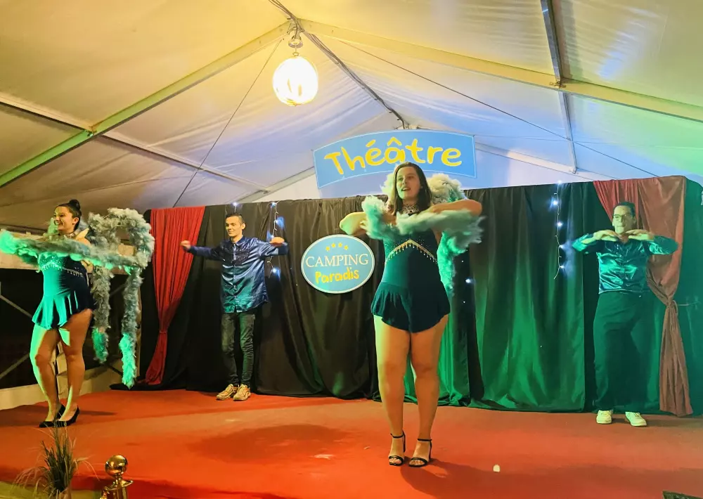 Entre amis, prolongez vos soirées d'été en participant aux karaokés, concerts, soirées dansantes ou repas à thèmes du camping, ou encore notre nouveau show "Le Moulin bleu" : vous passerez à coup sûr un moment inoubliable !
