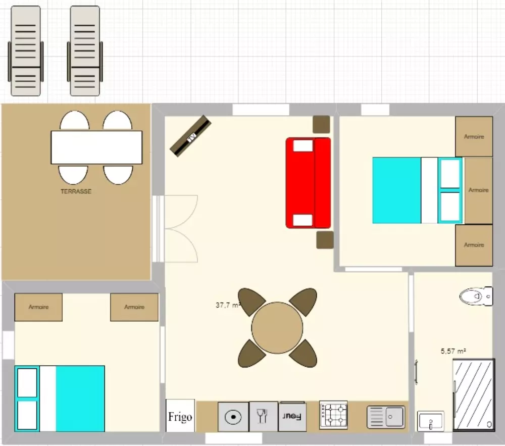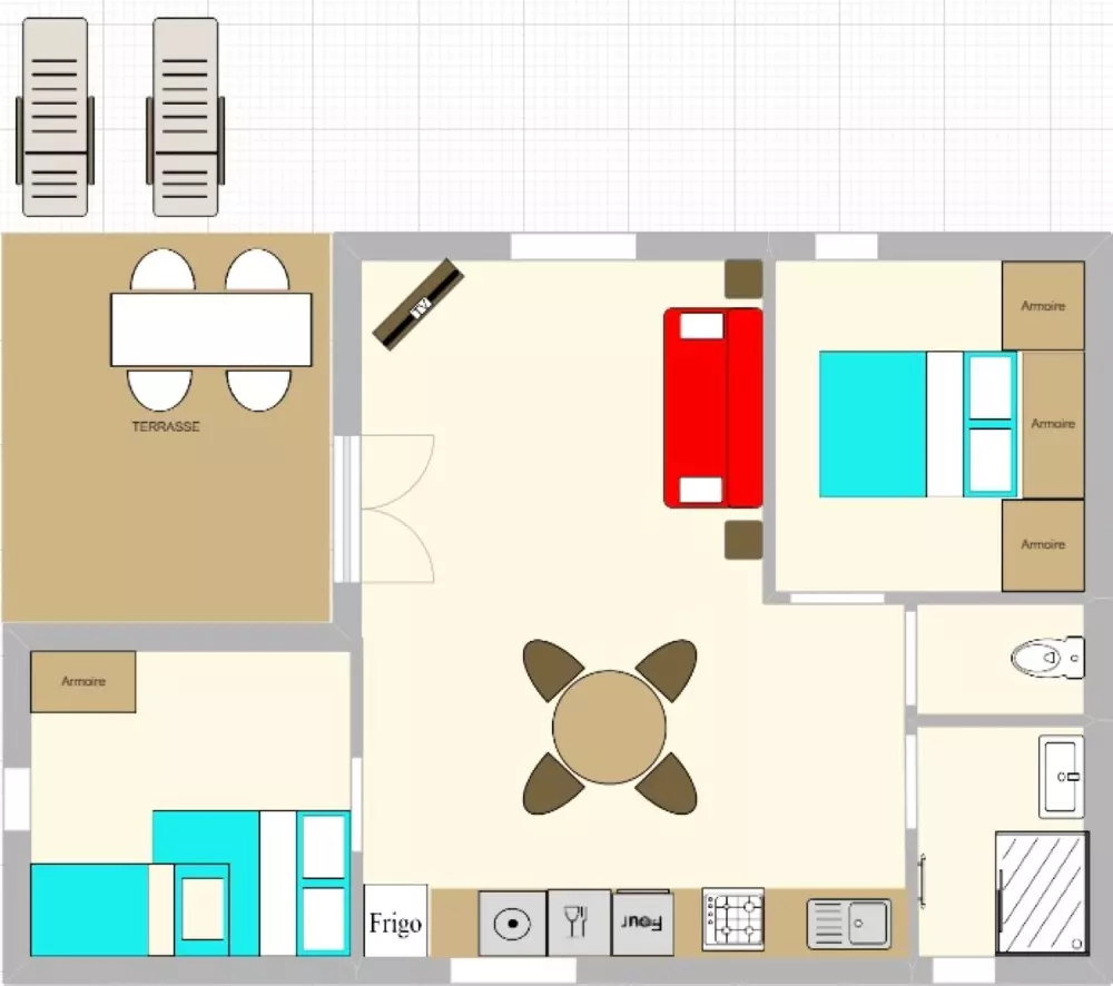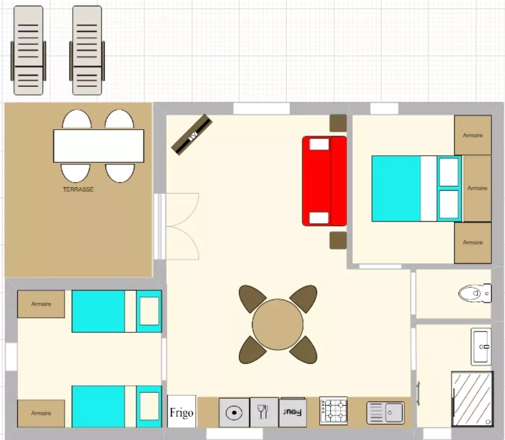 En prenant de la hauteur, vous apercevez les différents équipements de loisirs : aire de jeux, terrain de pétanque, salle de soirée … Tout est fait pour amuser petits et grands !