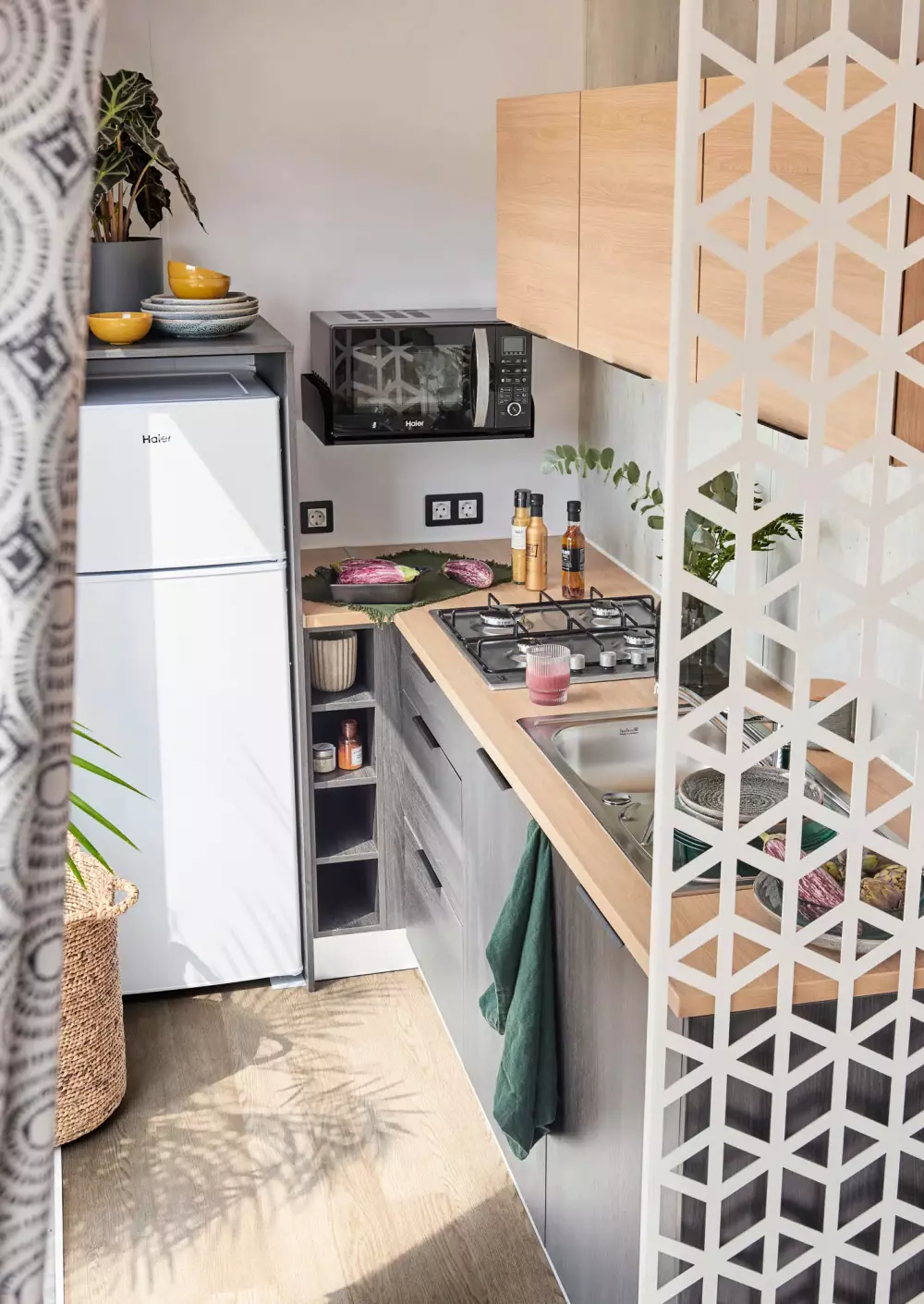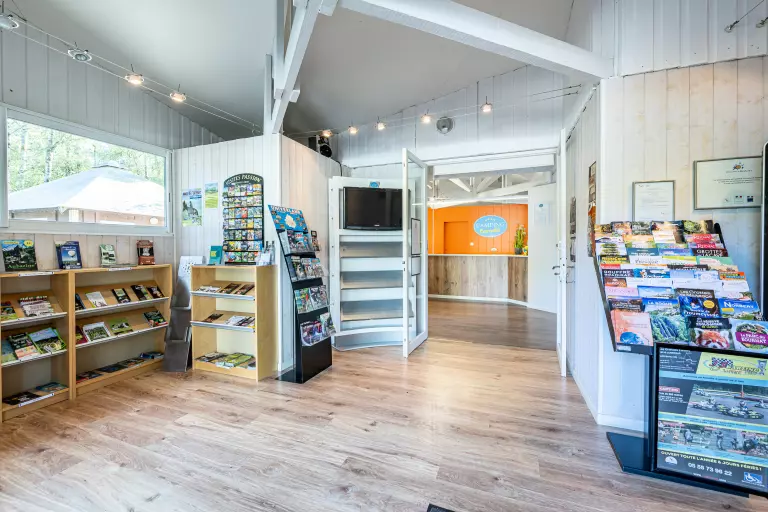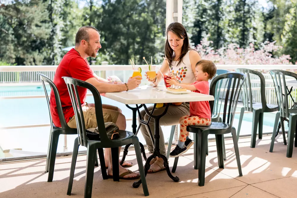 Pour compléter votre expérience, laissez-vous tenter par un repas, un apéro ou un en-cas entre amis, mais sans avoir à cuisiner vous-même ! Des produits locaux se sont glissés dans l'offre restauration, c'est aussi comme ça que vous découvrirez la région ! L'ambiance Guinguette de la terrasse au bord de la piscine se prête aux retrouvailles autour d'un verre ou d'une glace. Au coin épicerie vous trouverez pain, viennoiseries et autres indispensables. Pour le wifi, les jetons de machine à laver, le prêt de livres ou de jeux de société, la location de vélos.