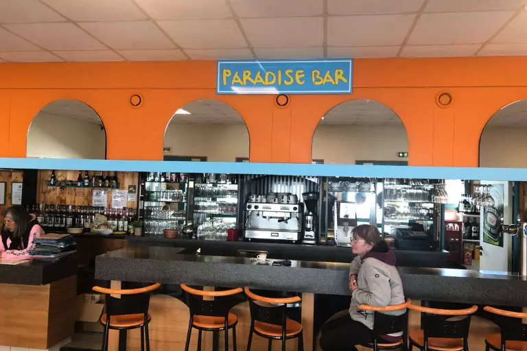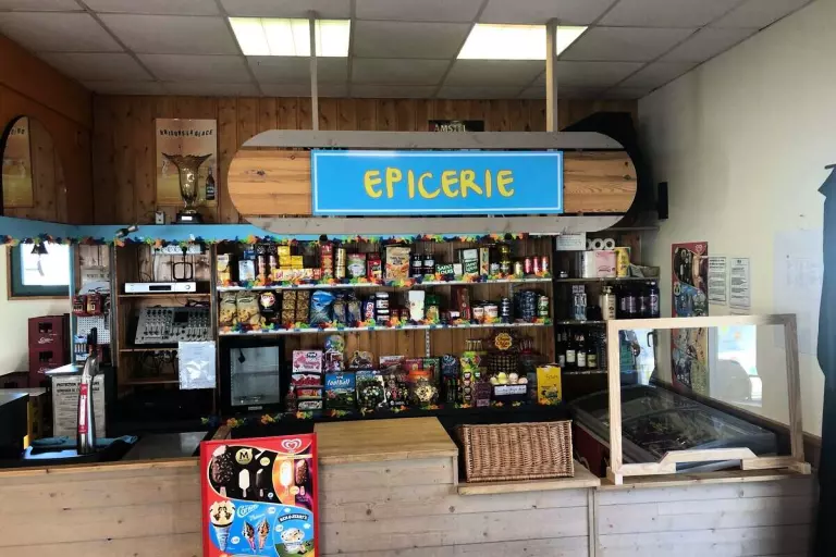 Retrouvez le bar et l'épicerie de dépannage au cœur du camping. Pendant la pleine saison, en juillet/août, profitez des services de pains et viennoiseries, de journaux, ainsi que des plats à emporter.