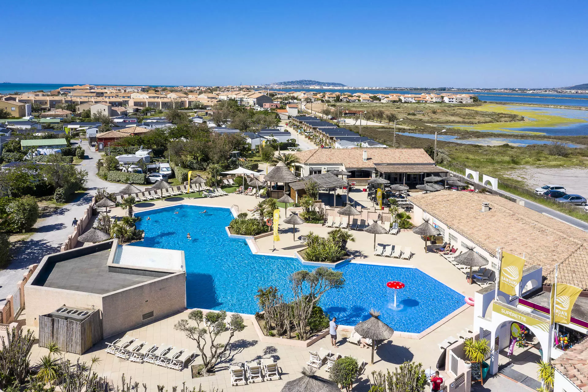 - Parc Aquatique : chauffé de 480m² avec piscine extérieure, pataugeoire, jets d'eau et cascade - shorts de bain interdits