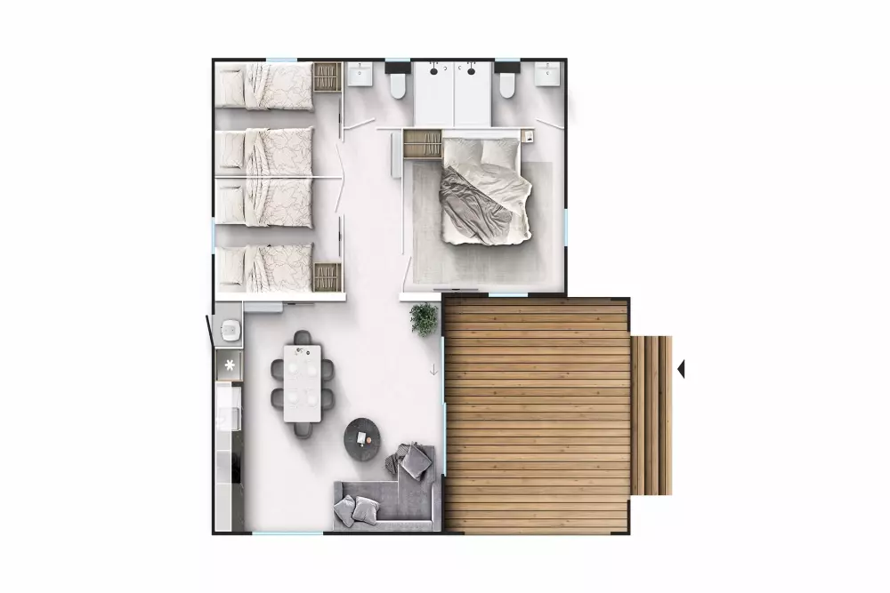 Faites votre choix parmi des villas et des tentes spacieuses haut de gamme, dont certaines vous offrent même le luxe d'une piscine privée. Le Village a été conçu pour vous garantir un séjour sans souci, grâce à des installations exclusives et des équipements de qualité. De plus, vous profitez librement de tout ce que le complexe a à vous offrir : des piscines aux expériences culinaires variées, en passant par les sports, les loisirs et les divertissements.