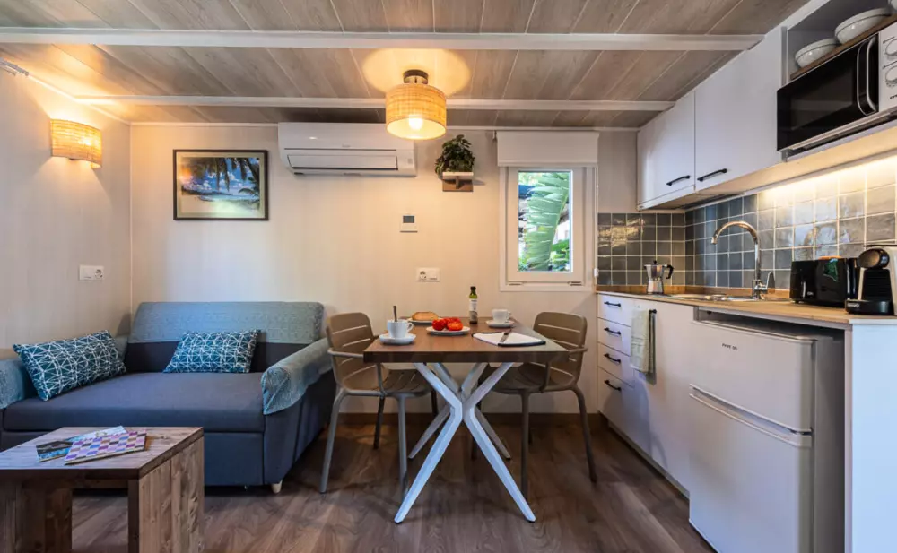 Les hébergements sont simples et climatisés. Chaque bungalow comprend un petit séjour avec coin repas. Les kitchenettes sont équipées d'un réfrigérateur et de plaques de cuisson.