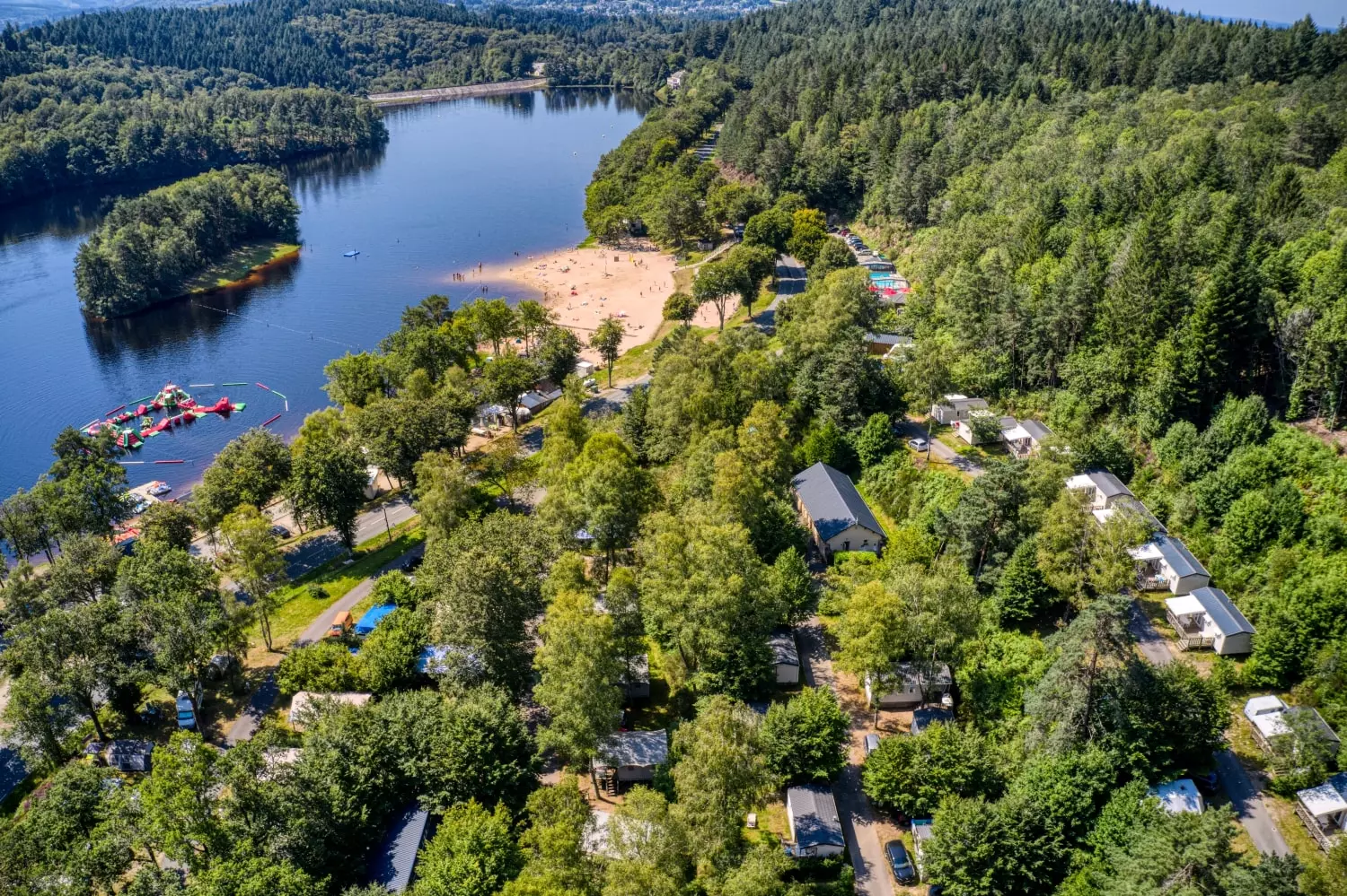 La plage de sable fin, directement accessible du camping, s'ouvre sur le Lac des Barriousses et ses 100 hectares d'une eau bleue idéale pour la baignade (surveillée en juillet août), le pédalo ou le canoë.