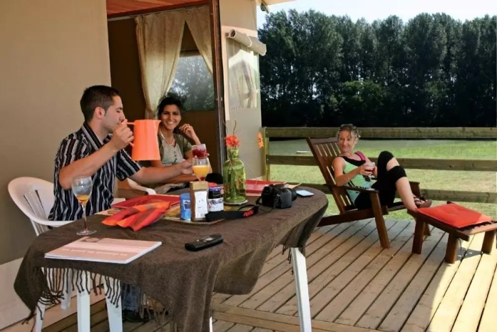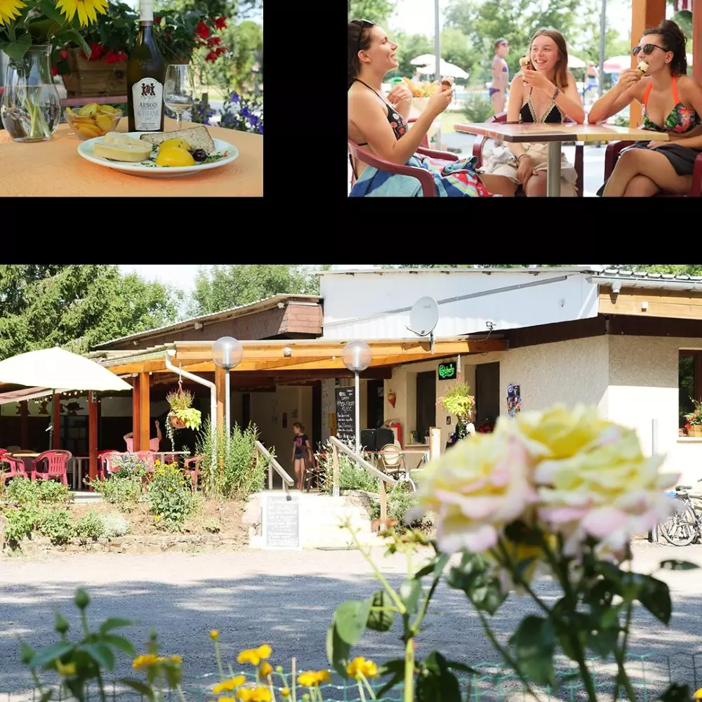 Notre Flower Camping Les 3 Ours vous propose des animations gratuites pour les enfants le matin de 10h à 12h, une soirée avec un clown et une soirée avec un DJ. Une fois par semaine, il y a un cirque avec entrée payante. Vous avez accès à une piscine, une pataugeoire, un terrain de pétanque, une table de ping-pong, un terrain de volley-ball et un terrain de football. L'accès à la rivière La Loue se fait par un escalier. Vous pouvez pratiquer la pêche (cartes vendues à l'accueil), faire des randonnées à pied ou à vélo, et vous êtes à proximité de la forêt de Chaux. Il y a une base de canoë-kayak à 2 km. Ne manquez pas de goûter le vin du Jura, le fromage Comté et le miel bio. Profitez de vacances vertes et reposantes dans de grands espaces. Et sur place, ne manquez pas notre restaurant traditionnel avec sa superbe terrasse couverte.