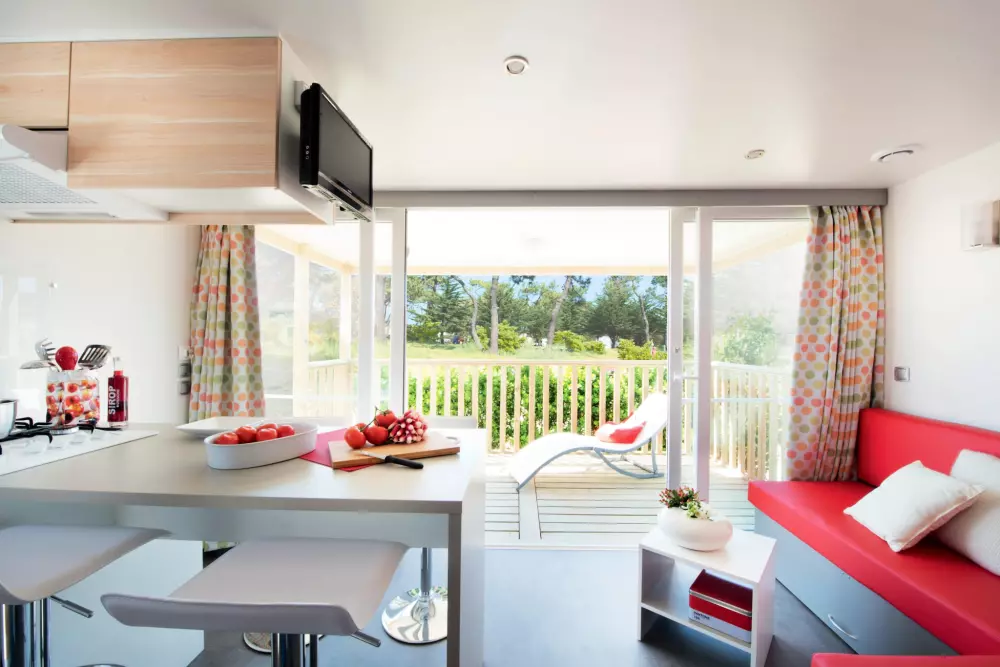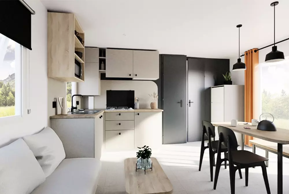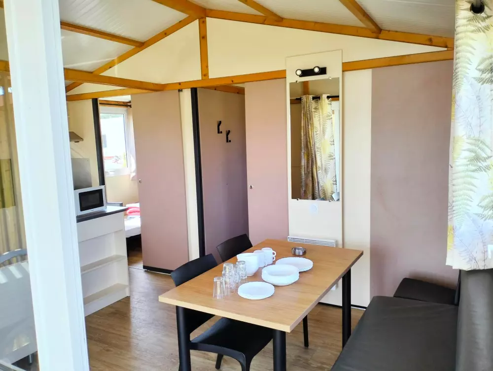 Locations de mobil'homes, chalets, caravane, roulotte et un mobil'home pour personne à mobilité réduite.