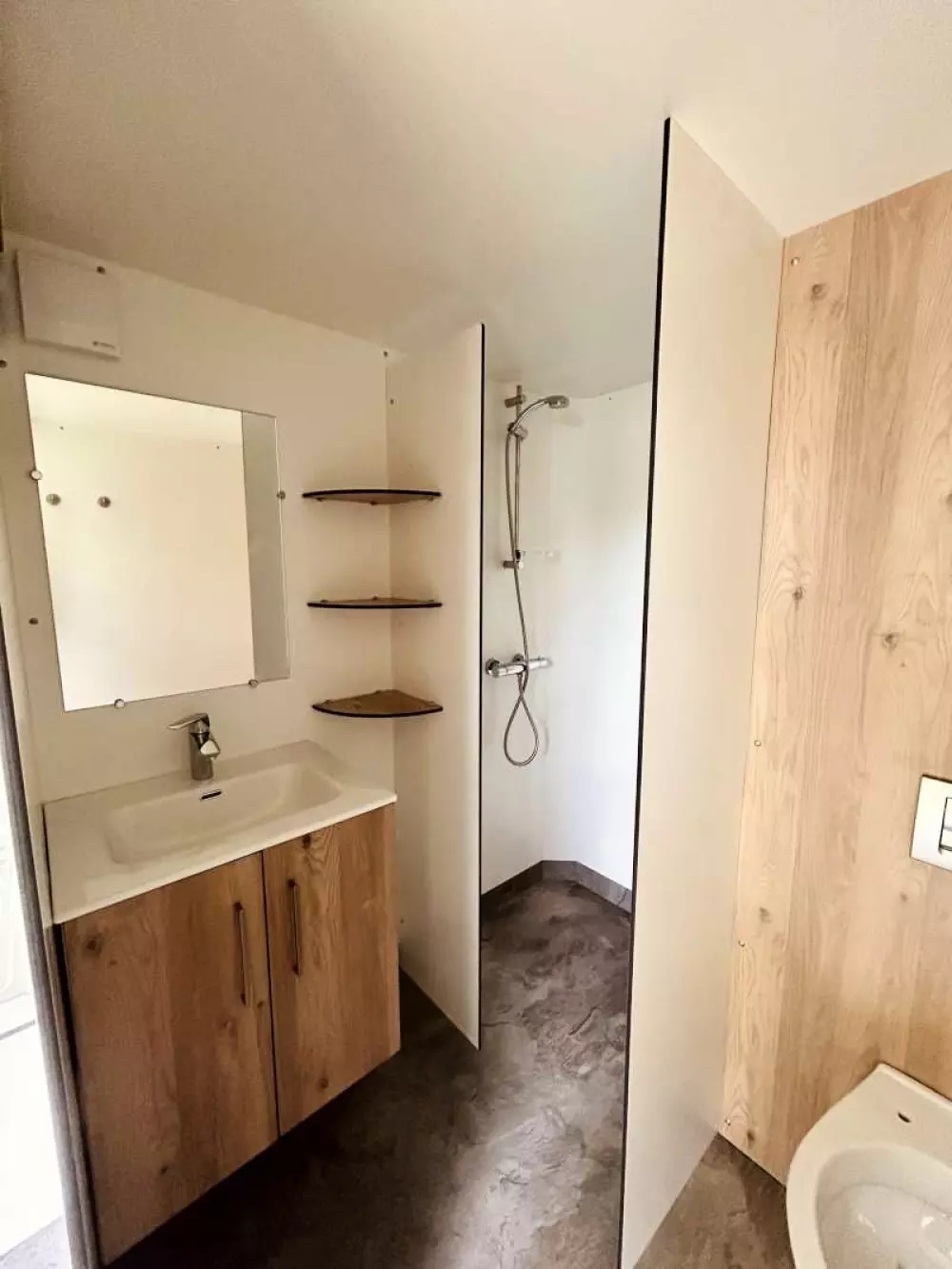 Sanitaires confortables avec eau chaude comprise dans le prix du séjour, baignoire pour bébé et sanitaire pour personne à mobilité réduite (douche et wc).