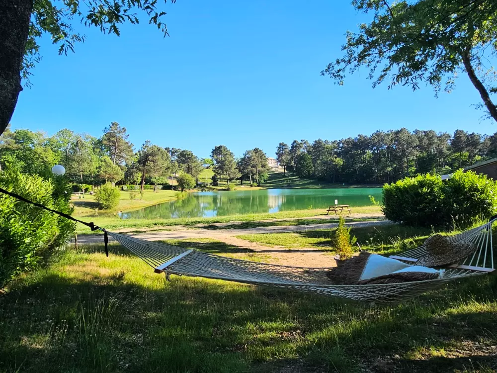 À proximité de l'étang de pêche, ces emplacements permettent de profiter d'un camping nature haut de gamme en Dordogne, alliant liberté, calme et prestations de qualité.