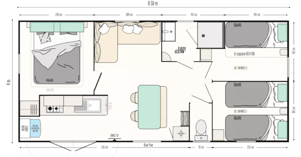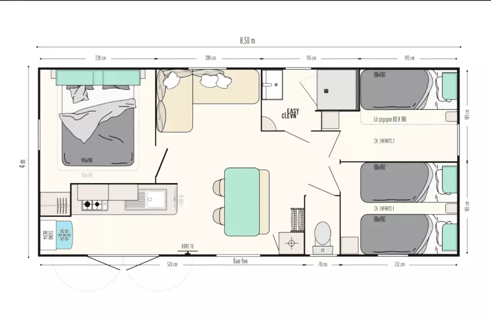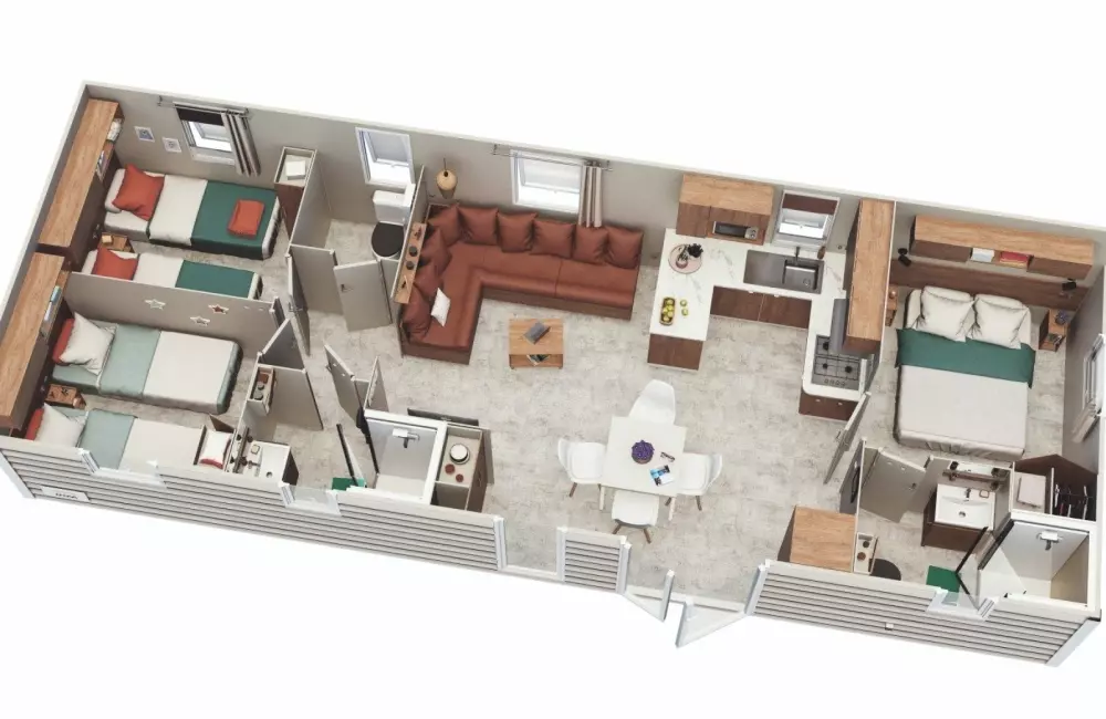 - Hébergements locatifs : Mobil-homes équipés et bungalows de différentes capacités.