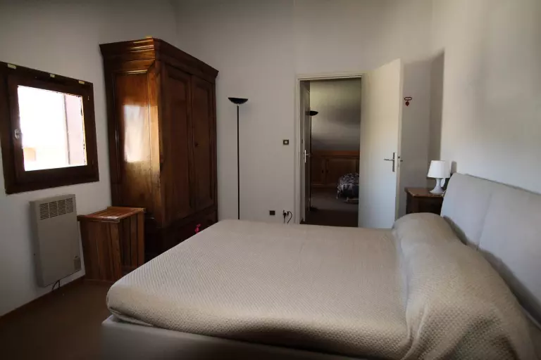-une chambre avec un lit deux personnes 140 cm.