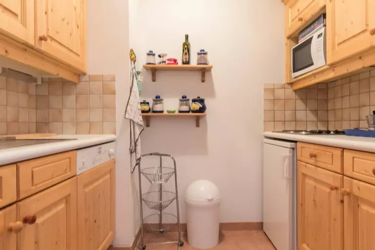 D'une cuisine équipée avec lave vaisselle, plaques électriques et micro onde.