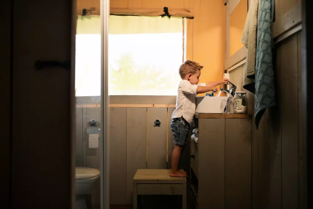 - Emplacements avec sanitaires privés (douche, toilettes et lavabo directement sur l'emplacement).