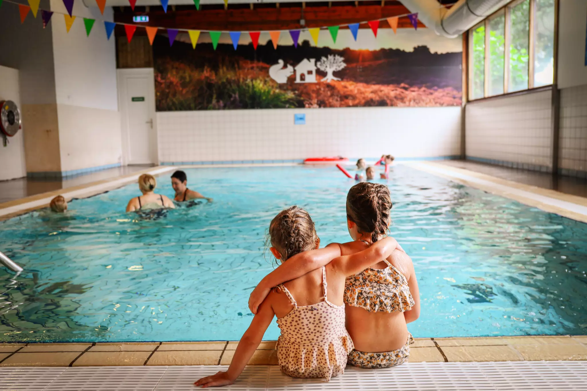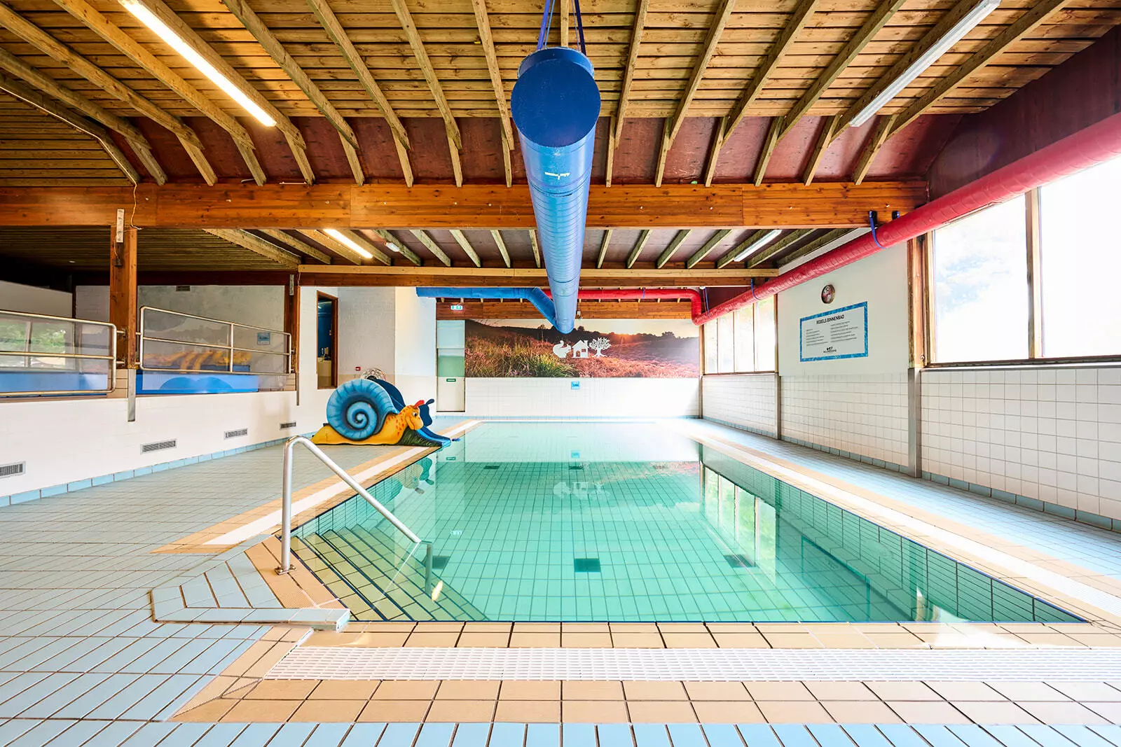 Par beau temps, l'étang de baignade devient l'endroit le plus chouette du monde. Éclaboussures dans l'eau, châteaux de sable, traversée sur une corde au-dessus de l'étang… Les enfants atteindront-ils l'autre rive au sec ? Pendant qu'ils s'amusent, vous profitez du soleil sur la plage qui entoure l'étang. Et si le ciel se couvre, la piscine intérieure vous attend pour une bonne baignade.