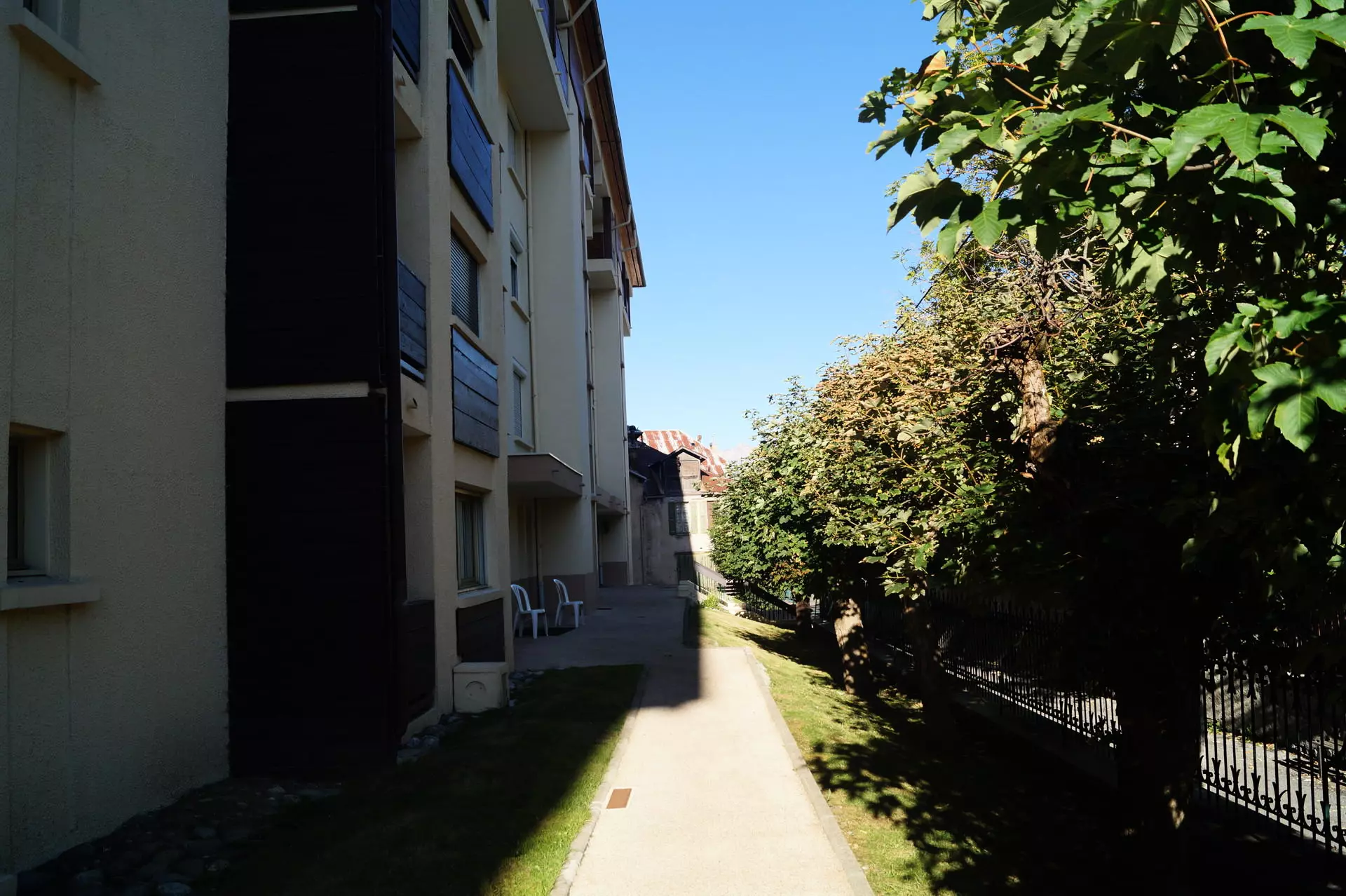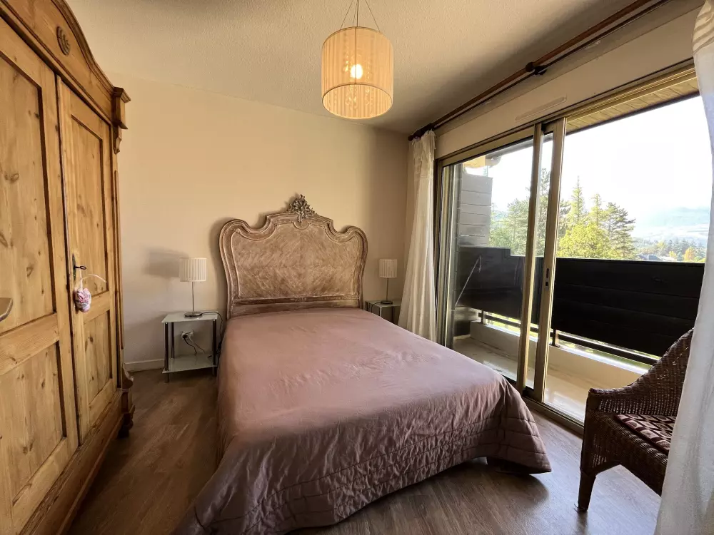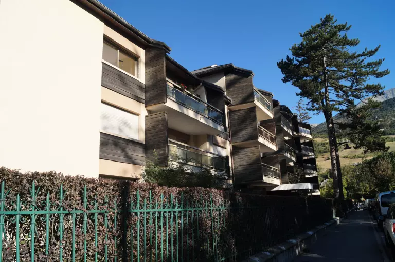 Dans le village de Barcelonnette, en plein centre ville dans une belle résidence avec un parc arboré et très calme,