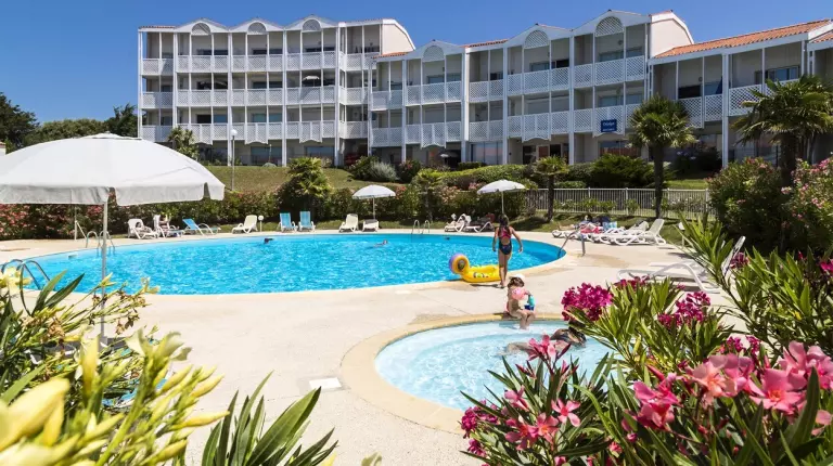 Réparties sur 2 bâtiments de 2 ou 3 étages pour une ambiance plus intimiste, la résidence s'articule autour de la piscine découverte avec pataugeoire.