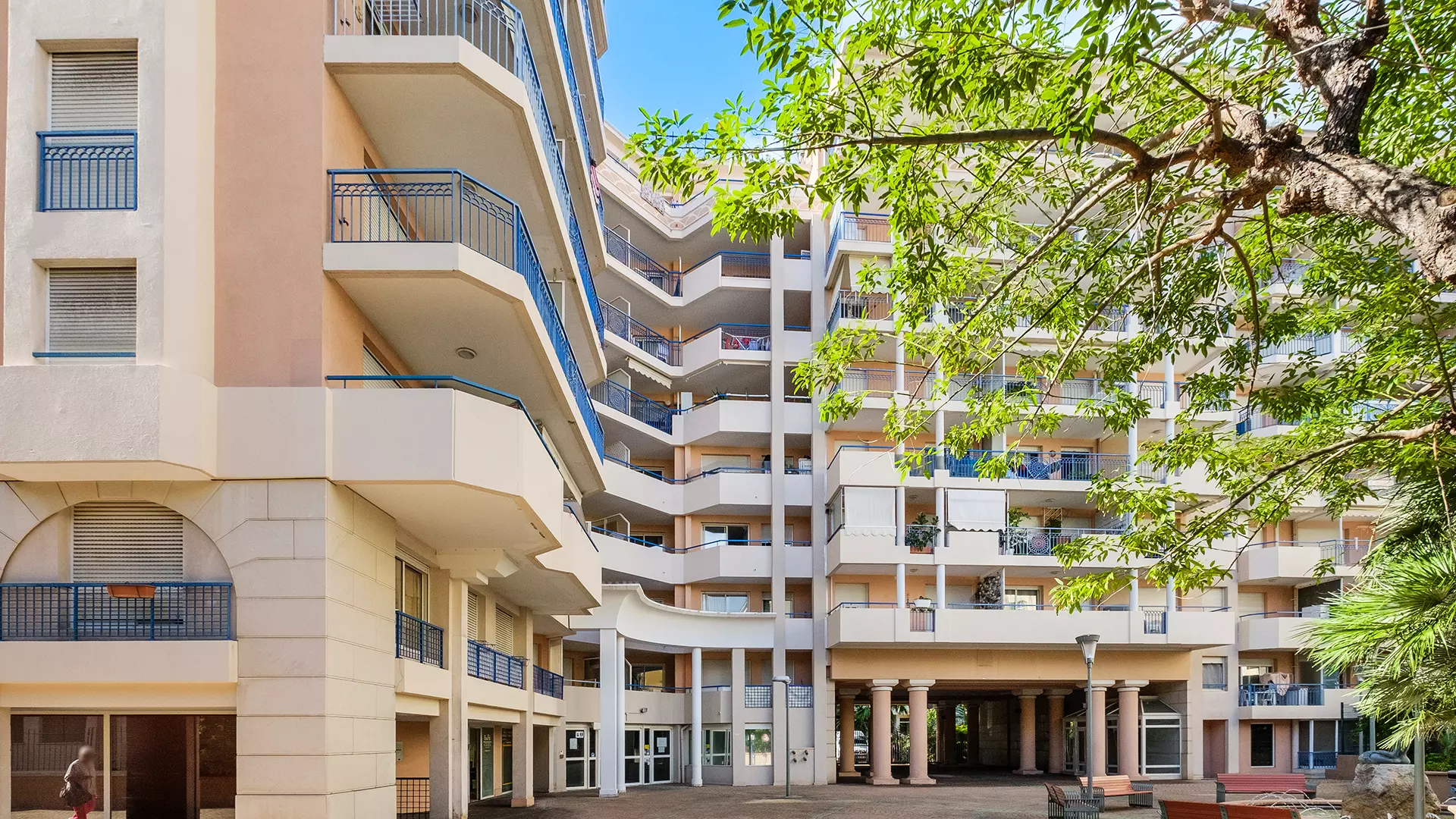 Vous profiterez du calme d'un petit parc dans une résidence aux appartements climatisés et confortables.