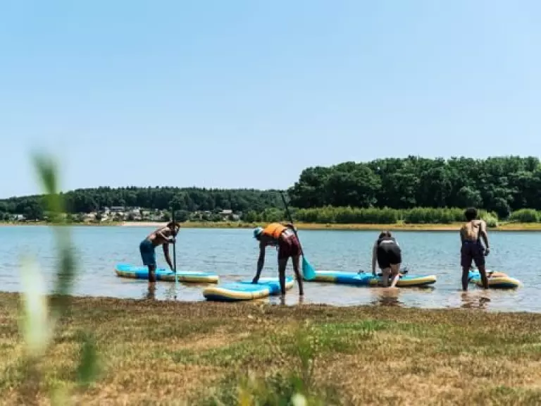 Le lac se trouve devant le camping pour une baignade en pleine nature ou pour d'autres activités aquatiques.