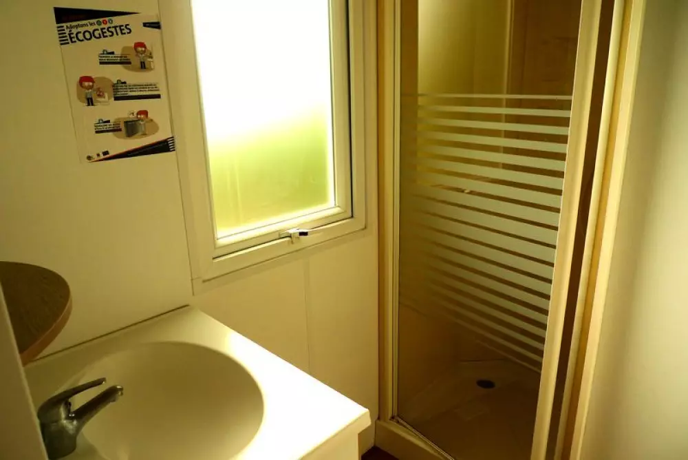 également profiter de quelques légumes et plantes aromatiques grâce à nos carré potager. Au cœur du camping, une grande prairie est entretenue par nos moutons. Si vous avez des épluchures et autres restes alimentaires, vous ferez le bonheur de nos poules ! L'engagement écoresponsable passe par des actions concrètes : tri sélectif et compostage, gestion optimisée de l'eau avec un récupérateur d'eau de pluie issu de l'ancienne piscine, économiseurs d'eau et assainissement écologique. Côté énergie, place à l'éclairage LED, aux bornes solaires et au chauffage à inertie pour une consommation maîtrisée. La biodiversité est également mise à l'honneur avec des hôtels à insectes et des colonies de chauves-souris qui trouvent refuge sur le site, tandis que seuls des produits d'entretien éco-labellisés sont utilisés. Dans une démarche zéro déchet, des initiatives de récupération sont en place : boîte à livres, espace dédié aux cartes et dépliants touristiques réutilisables et récupération des aliments.
