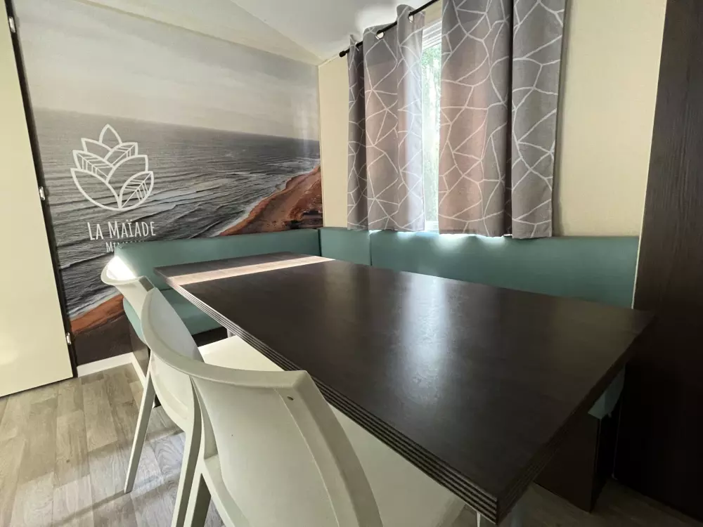 Venez vivre un moment suspendu en pleine nature ! A l'orée des forêts de pins, le camping Ushuaïa Villages La Maïade vous accueille dans un écrin de verdure, calme et propice à profiter de vos vacances en famille, en couple ou entre amis ! Au centre du camping, une belle piscine, un sublime chêne, qui abrite le snack et sa terrasse, propices à des pauses gourmandes, une pizza sur le pouce, des soirées animées, des moments de convivialité, … Laissez-vous tenter par un match de beach volley, le traditionnel tournoi de pétanque, des parties de ping pong endiablées, ou encore nos sorties running matinal ! Les ados pourront profiter de la salle qui leur est dédiée (babyfoot, jeux de société, etc.), et les plus petits s'amuser sur l'aire de jeux. De quoi contenter toute la famille ! Près des plages et du lac de Mimizan, le camping propose des mobil homes pour tous les budgets, des hébergements glamping en lodges, ou bien des emplacements et sanitaires pour l'accueil des tentes et vans / camping-cars ou caravanes. Pour votre confort, la Réception est ouverte sur des plages horaires étendues, pour vous conseiller des itinéraires de randonnées, des activités, visites, ou répondre à vos besoins ! Des services supplémentaires sont à votre disposition : laverie, épicerie, kit bébé, barbecue collectif, bibliothèque, etc.