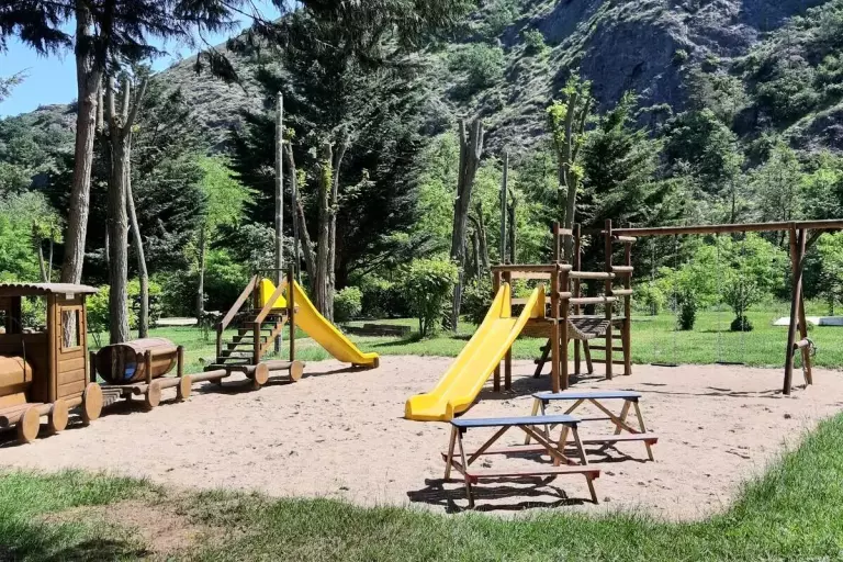 - Aire de jeux pour enfants : Zone de jeux pour enfants outdoor : jeux de sociétés, bac à sable, portique, jeux éducatifs, toboggan, balançoire, trampoline