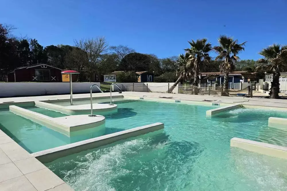 Profitez de notre espace aquatique flambant neuf avec une piscine chauffée de 140 m², équipée de balnéo, d'une rivière sauvage, et d'une pataugeoire ludique avec champignon pour les plus petits.