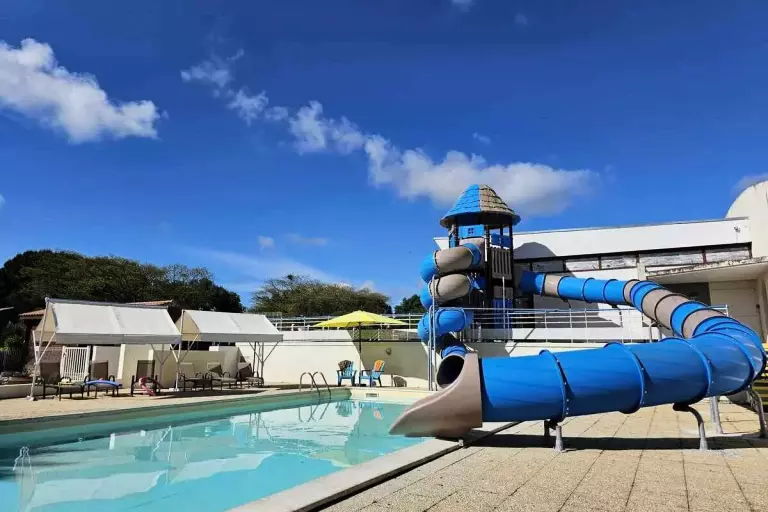 Une seconde piscine extérieure avec toboggans complète l'offre pour des instants de baignade et de fun en famille.