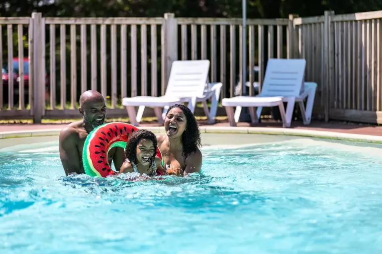 Tout le monde aime la piscine, lieu de rendez-vous des familles comme des amoureux. C'est là que les enfants s'amusent et rient aux éclats, que les tout-petits s'initient aux plaisirs de l'eau à la pataugeoire et que les amoureux se dorent la pilule sur les transats. Et quand celle-ci est en plus chauffée (de mai à septembre), même la météo ne pourra pas jouer les trouble-fête et vous empêcher d'en profiter quand vous voulez !